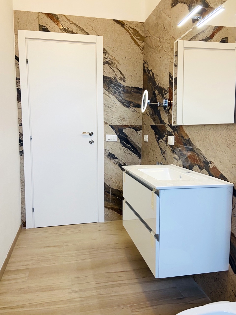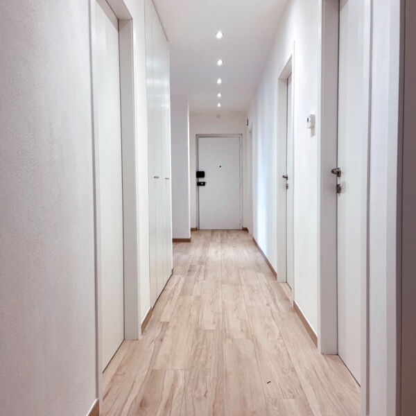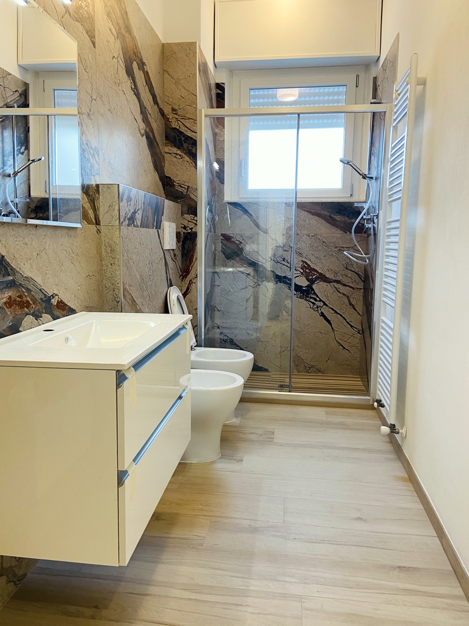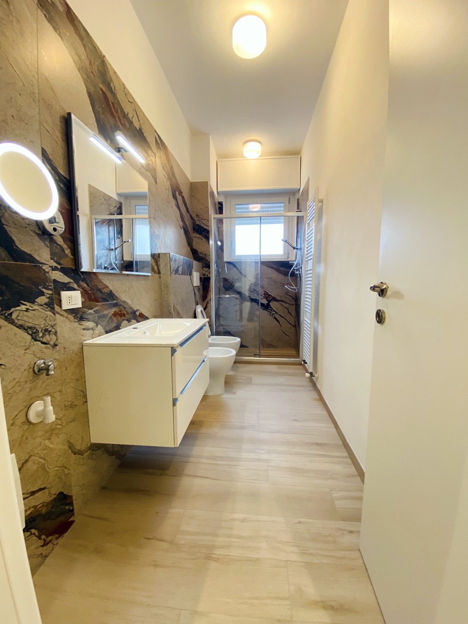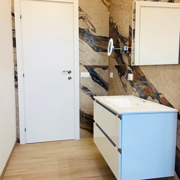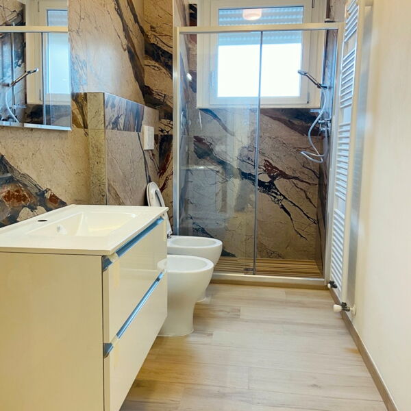 Rifacimento impianto elettrico e idraulico, cartongesso, montaggio di piastrelle, rasatura e imbiancatura, rifacimento pavimenti, creazione di un secondo bagno, montaggio porte, infissi e blindato, arredamento.
