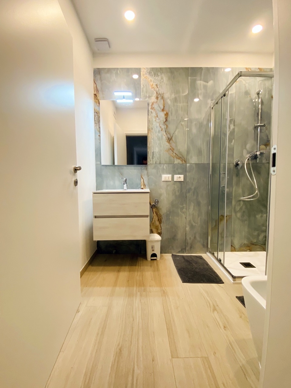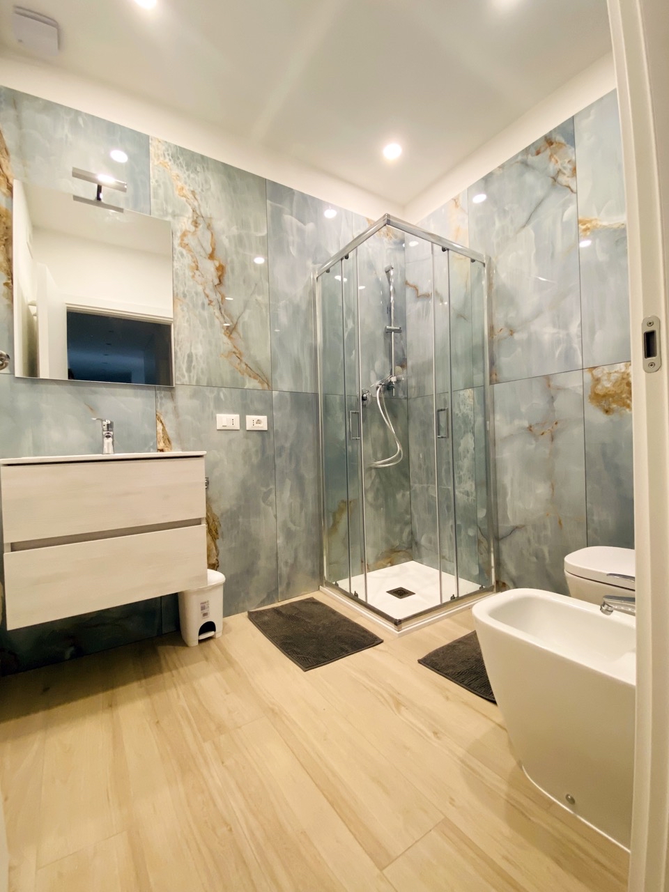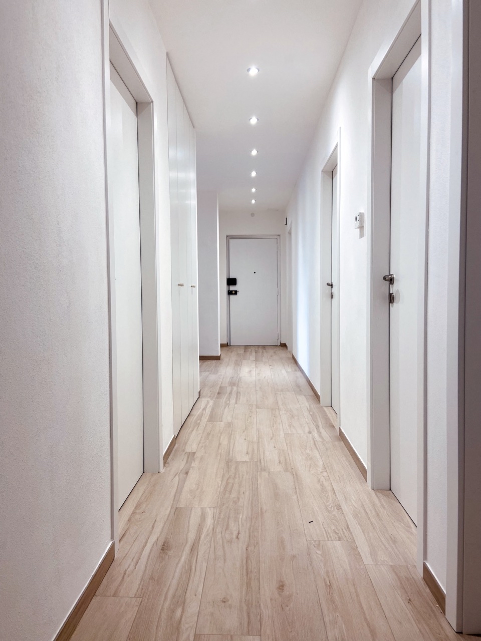 Rifacimento impianto elettrico e idraulico, cartongesso, montaggio di piastrelle, rasatura e imbiancatura, rifacimento pavimenti, creazione di un secondo bagno, montaggio porte, infissi e blindato, arredamento.