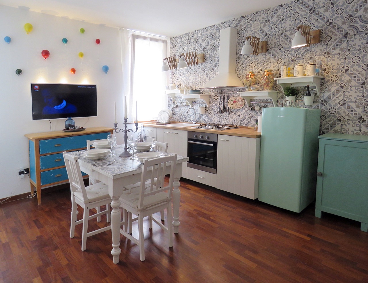 Lavori Svolti: Rifacimento impianto elettrico cucina, montaggio piastrelle, imbiancatura, arredamento.